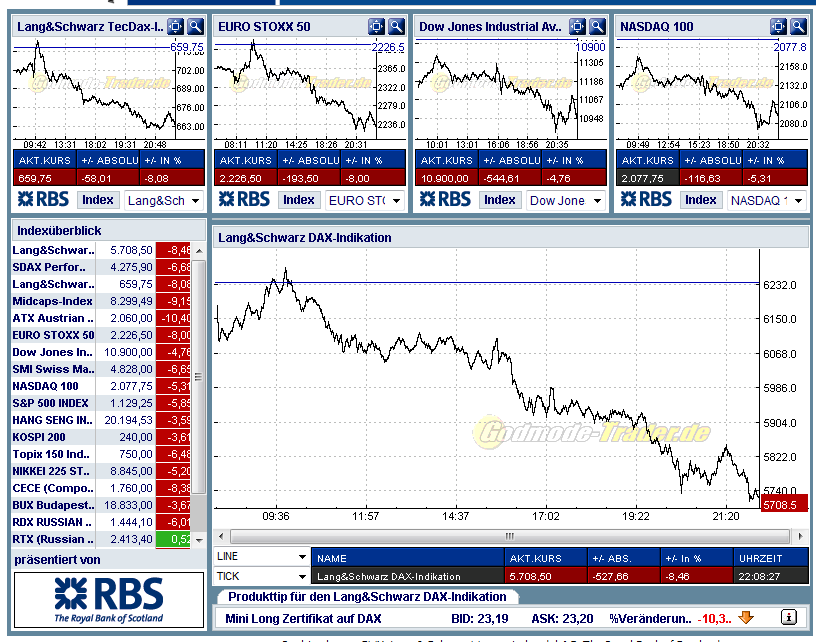 Mir bleibt nun nur noch diesen Tag anhand des Charts und leider zu wenig ausgewählter Berichte aus Blogs und Medien zu dokumentieren.